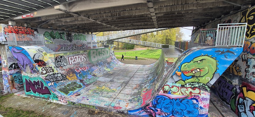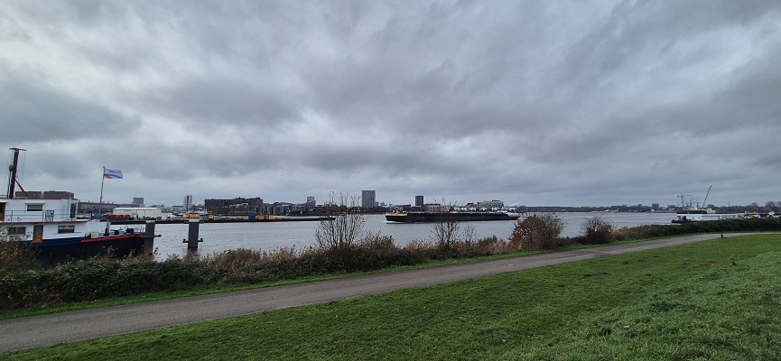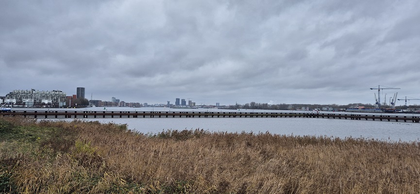 Na bijna een jaar wandelen en 14 etappes vanaf Dieren wandelen we vandaag Amsterdam in. Het is de laatste etappe, nummer 16 van Amsterdam Science Park naar Amsterdam CS, en een beetje een vals eind. Etappe 15 moet nog even wachten omdat de Diemerzeedijk niet begaanbaar is. Maar we genieten van het lopen in de stad, deze keer vergezeld met de drie ‘first ladies’. We doorkruisen een aantal parken: Flevopark, W.H. Vliegenbos en Noorderpark. Maar nog mooier zijn de rafelranden van de stad, bijvoorbeeld het mooie pad langs het IJ waar je met twee trekpontjes over het water moet. Aan de overkant de skyline en drukte van de stad Amsterdam, en waar we wandelen riet dat met de wind meebeweegt, voorbijvarende binnenvaartschepen en overal krijsende grasparkieten. Onderweg ook historie zoals de Oranjesluizen uit de 18e eeuw en de prachtige houten huizen op de Nieuwendammerdijk, ooit de grens met Waterland. In de schemering van de avond bereiken we het pont bij het IJ. Het is een waardige afsluiting van een dwarsdoorsnede van Nederland, onverhard en afwisselend. Binnenkort nog etappe 15 van Muiden naar Amsterdam Science Park en het project, een verlaat kerstkado voor Rob Wolfs en Rutgers, wordt afgerond.