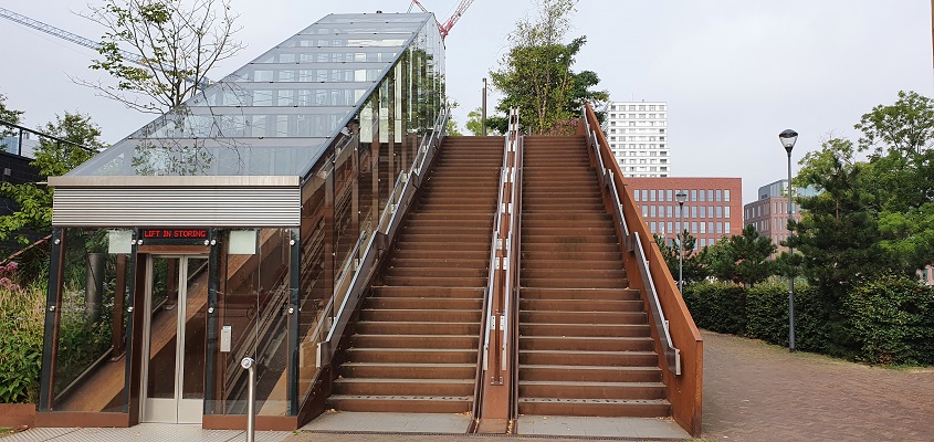 De 250 meter lange en 10 meter brede Paleisbrug heeft ruimte voor een lift, voetgangersstroken, planten, bomen, bankjes en verlichting, allemaal geïntegreerd in gevouwen Cortenstaal. De bruine roestkleur is het meest typische uiterlijke kenmerk van deze staalsoort. De planten worden belicht, evenals de bankjes en paden, waardoor de Paleisbrug een aangename plek is om te wandelen en te gaan zitten, zelfs ‘s nachts. In de zomer wordt warmte opgeslagen die in de winter wordt gebruikt voor de vloerverwarming. De vloerverwarming zorgt voor een lage temperatuur in het dek en de trap van de brug zodat er geen zout nodig is als het gaat vriezen. In de zomer blijft de lift aangenaam koel, dank zij grote ventilatoren die de koude onder de brug de lift in blazen. Het is een stadspark in ‘s-Hertogenbosch die de wijk het Paleiskwartier verbindt met de wijk Het Zand en de Bossche binnenstad. De Paleisbrug is naast de High Line in Manhattan de tweede parkbrug ter wereld.