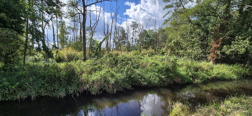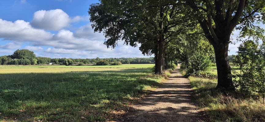 Kasteel Dalenbroeck oogt Middeleeuws en het park om het slot is startpunt van deze Premiumwandeling, verrassend afwisselend door bijzondere landschappen. Je bevindt je in Nationaal Park De Meinweg dat bestaat uit bossen, heide, vennen en beken. Er komen veel verschillende planten en dieren voor waaronder de adder, zandhagedis en wild zijn waarvan je overal de sporen langs de paden ziet. Kenmerkend voor het landschap zijn de oplopende terrassen richting Duitsland, maar die moeten nog even wachten. Eerst loop je over de statige oprijlaan het park van het kasteel uit. Aan de rand van het dorp heb je al iets verhoogd lopend, uitzicht over het weidelandschap rond het kasteel. Verderop volgen de Turfkoelen, de door turf ontstane plas ligt er idyllisch bij en op de vogelapp zie ik dat de kruisbek en boomkruiper vlakbij zijn. De waterstand van de Bosbeek wordt hier gerugeleerd waardoor de beek die vanuit Duitsland ons land binnenkomt, genoeg water heeft. Het kabbelend geluid hoor je links van je achter de wilde begroeiing. Over mooie landwegen in het overgangsgebied tussen het beekdal van de Roer en de hoger gelegen Maasterrassen loop je langs lange rijen eiken het bos in. Het grondpatroon van het bos is aangelegd, getuige de rechte boswegen. Maar het verveelt nergens, de bomen zijn imposant, af en toe een open stuk en overal wroetsporen van het everzwijn. Vlakbij Rothenbach kruis je de Rode Beek, Rothenbach. Het water is roodgekleurd door de aanwezigheid van ijzer en waaraan de naam van de beek is ontleend. Via een halfopen landschap en de vlakbij gelegen watermolen de Gittapper Mühle, kom je bij de Effelder Waldsee. Deze is ontstaan door zandwinning en staat bekend om zijn kraakheldere water. Erlangs stroomt de Roode Beek weer, slingerend door het lager gelegen beekdal. Hier is nieuwe natuur ontwikkeld en oude beddingen van de beek kronkelen door het landschap. Het is een rustig kabbelend beekje, een groot contrast met de Roer die je hierna ziet. De brede rivier heeft diep in het landschap haar bedding gelegd. Het pad dicht langs de rivier is soms afgebrokkeld, de hoge oevers zijn onderhevig aan erosie door de sterke stroming in de bochten van de Roer. Het is het leefgebied van de ijsvogel die je zomaar op de takken langs het water zou kunnen zien. Of een bever die hier veel voorkomt getuige de vele glijgangen van de natte broekbossen naar de rivier. Over landelijke wegen loop je terug naar kasteel Dalenbroeck. Het kasteel is een waardige afsluiting van de met recht benoemde Premiumweg, groots net als de wandeling.