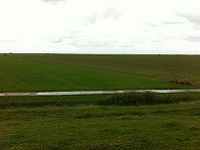 Makkum, Allingawier, Angterp, Ferwoude, Workum. Heerlijke namen in een heerlijke wandeling met weidse groene vlakten met enorme stolpboerderijen met kanaaltjes waar de bootjes je stapvoets vergezellen. Het is aan het aantal boten af te leiden dat we in de grote vakantieperiode zitten. De terpen waarop de grote boerderijen zijn gebouwd zijn al van ver te zien zo ook Workum die je aan het eindpunt van de etappe nadert. Dit doe je over een prachtig kerkepad over 8 bruggetjes waar vroeger de gelovigen op weg naar de kerk gingen. In Allingawier kun je een uitstapje in het dorp maken door een soort openluchtmuseum te bezoeken. Meld bij de kassa dat je net Nederlands Kustpad loopt, als je dit niet wil doen. De terugreis kan op vele manieren, alleen op zaterdag neem je bus 44 naar Bolsward en hierna bus 98 naar Makkum. De markering is prima.